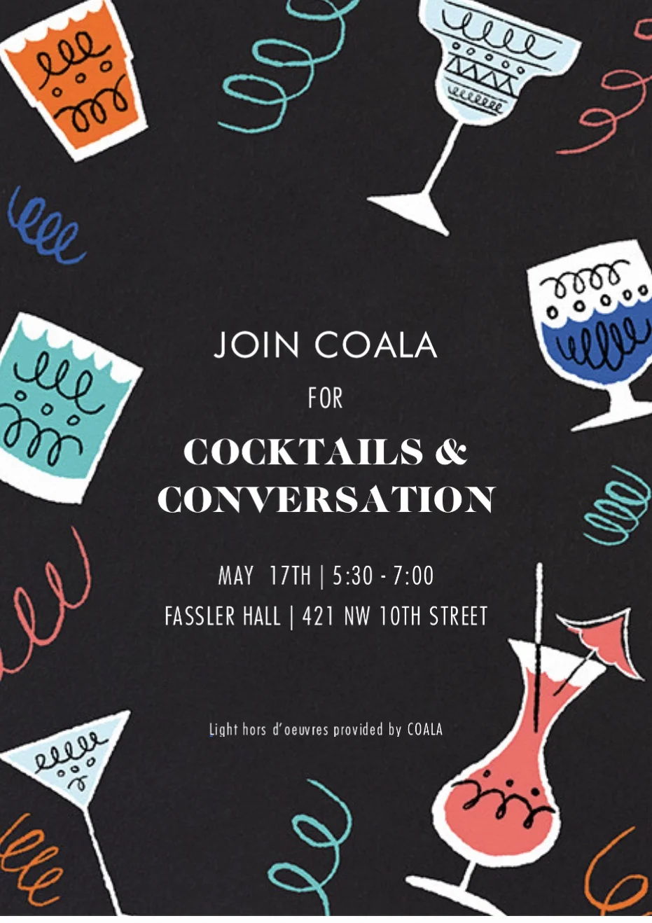 COALA OKC May 8, 2018 Save the Date ~ May 17 ~ Cocktails & Conversation COALA OKC May 8, 2018 Join us and socialize with other fellow members. Light hors d'oeuvres provided by COALA.